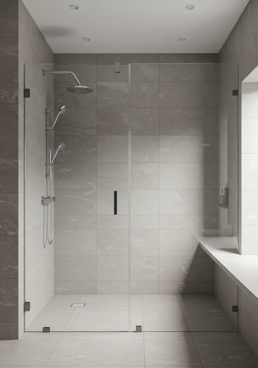 A seamless walk-in shower enhances the sense of space and luxury. It creates a clean, uninterrupted floor plan and improves accessibility.