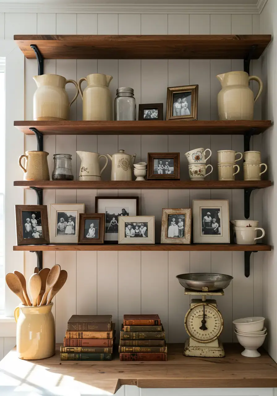 Those open shelves we talked about? They’re the perfect spot to show off things you love! Collectibles like vintage mixing bowls, old cookbooks, or unique ceramic pieces add personality and history. It tells a story about you and your home. My collection of mismatched vintage mugs always gets comments!