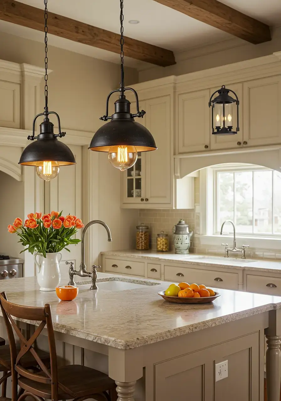 Lighting is like jewelry for your kitchen, and vintage-inspired fixtures are perfect for adding that touch of aged character that farmhouse style embraces. Think pendant lights over an island or a chandelier over a dining area. I found a beautiful old-school pendant light at an antique shop, and it’s become a real focal point.