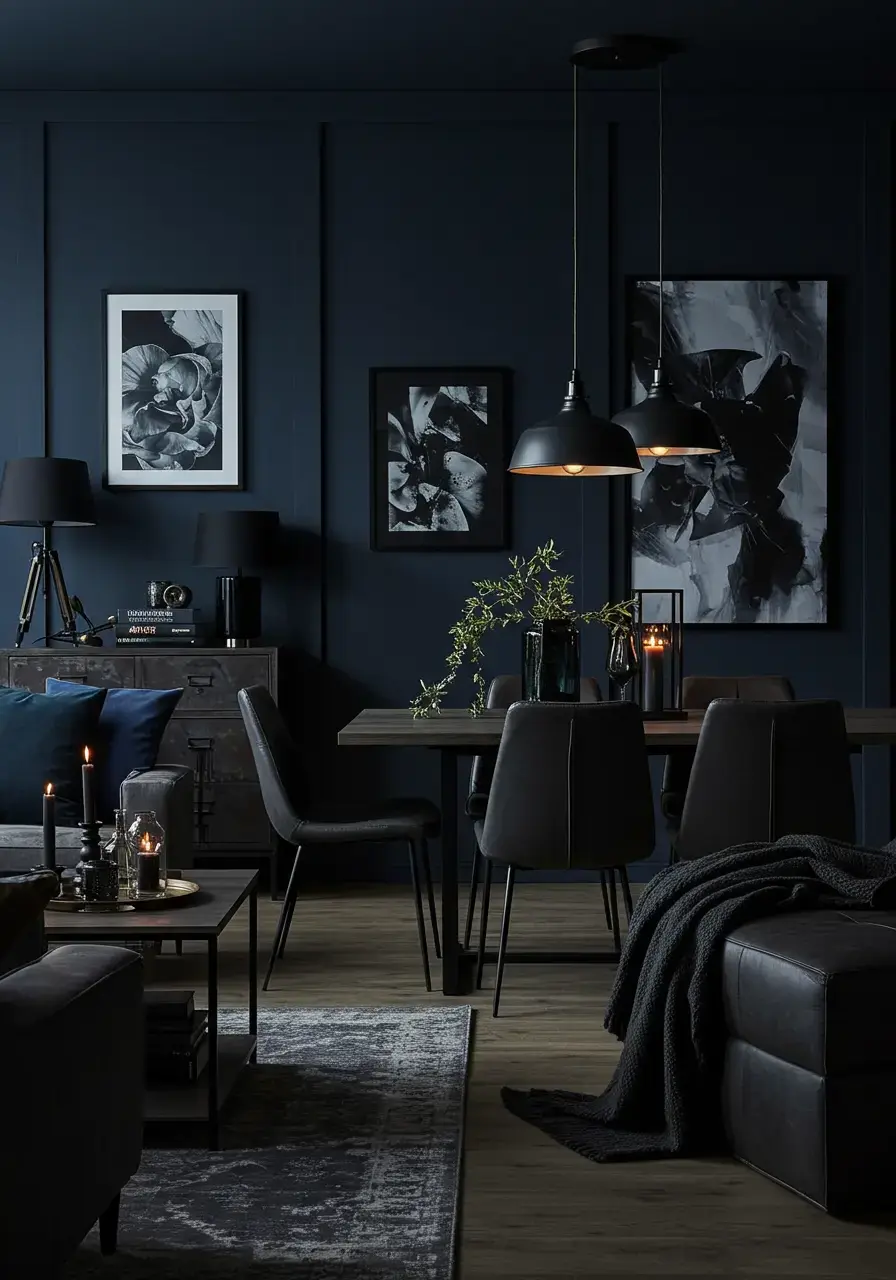 - Incorporate dark accents like wall art, textiles, or decor items.