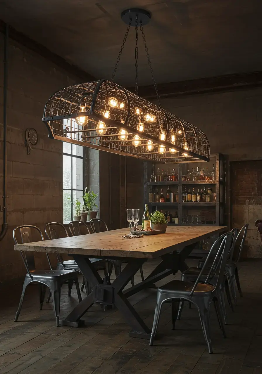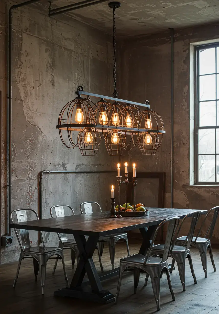 Beyond just pendant lights, one truly standout light fixture can transform your industrial dining room. This could be an oversized chandelier, a unique sculptural piece, or even track lighting in a raw finish. It’s the design element that grabs attention the moment you walk in.