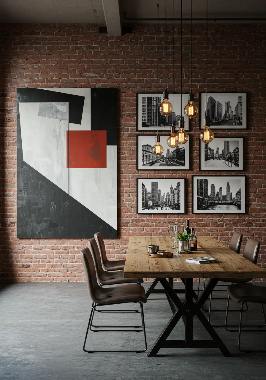 While the industrial look can seem minimalist, it’s a great canvas for art that has a bit of an edge. Think abstract pieces, black and white photography, or art that uses industrial materials like metal. It’s about adding personality without clutter.